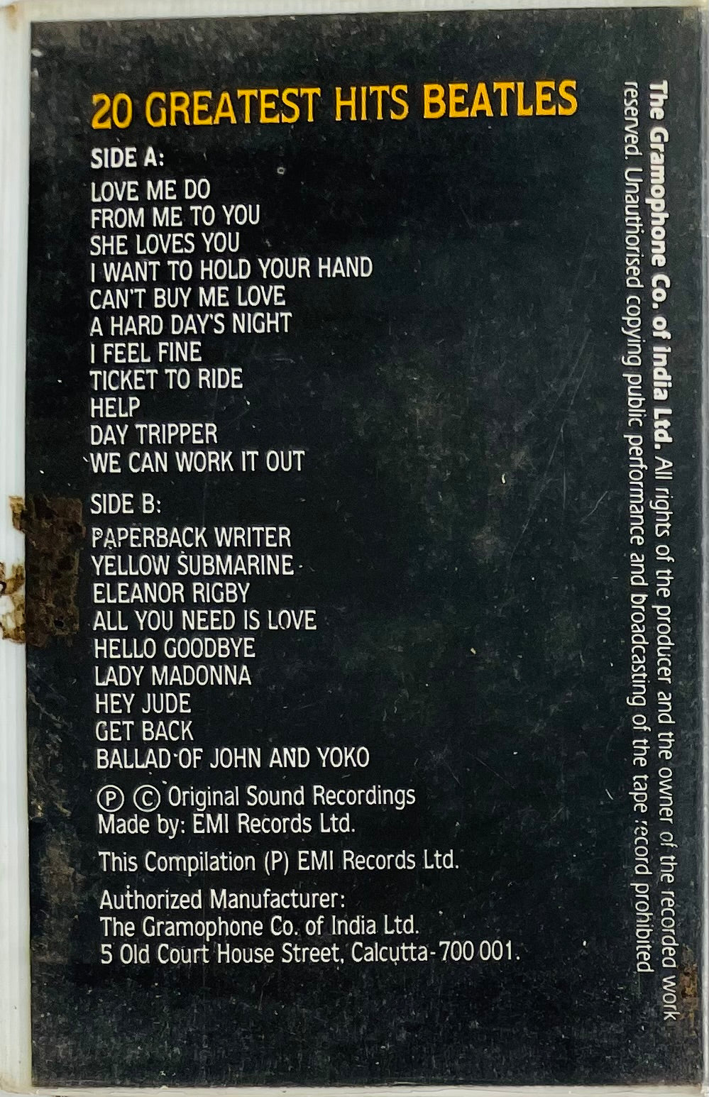 Note : Please forward and rewind the tape before playing for the first time and also adjust the azimuth for optimum sound.