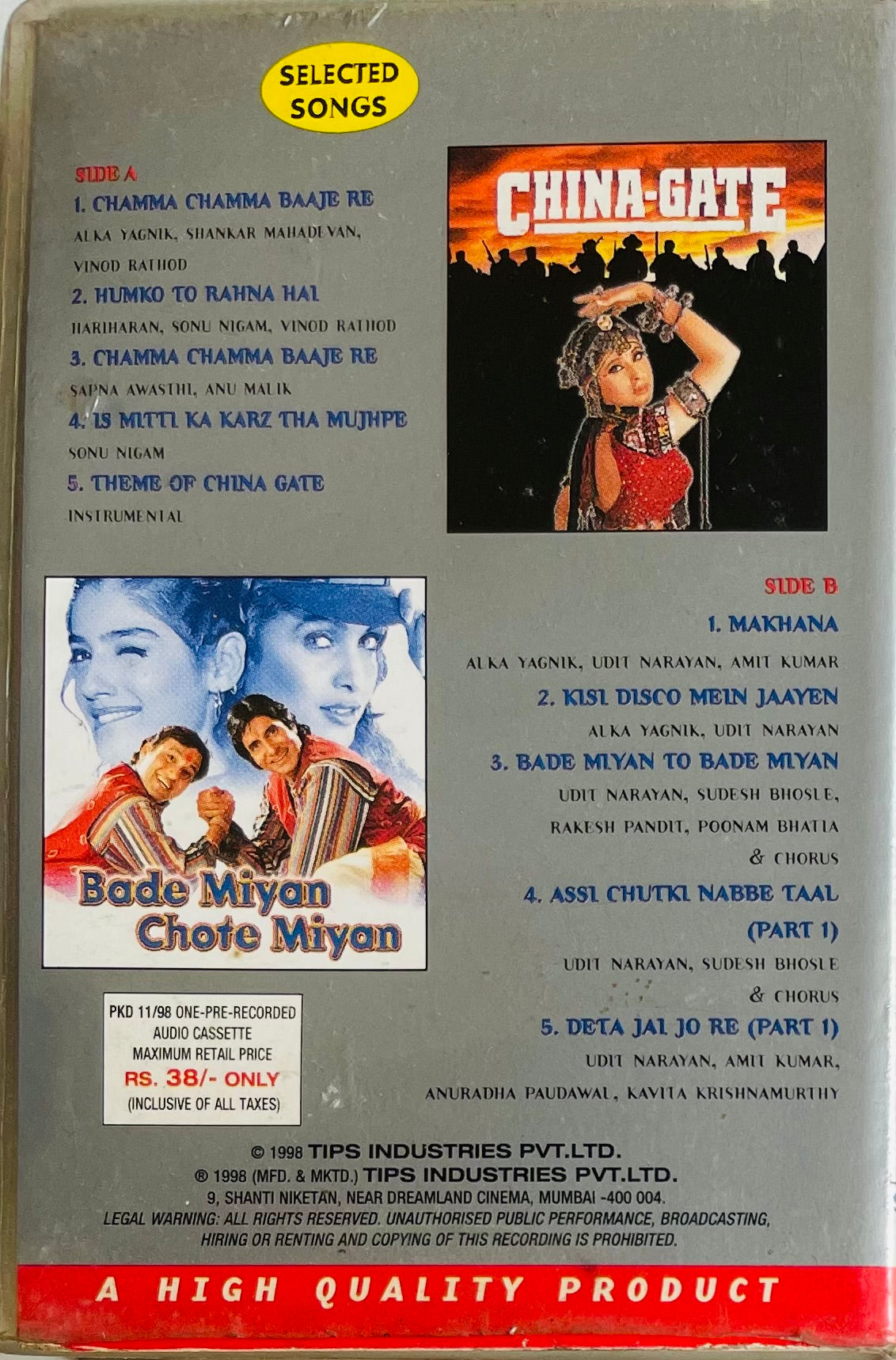 Note : Please forward and rewind the tape before playing for the first time and also adjust the azimuth for optimum sound.