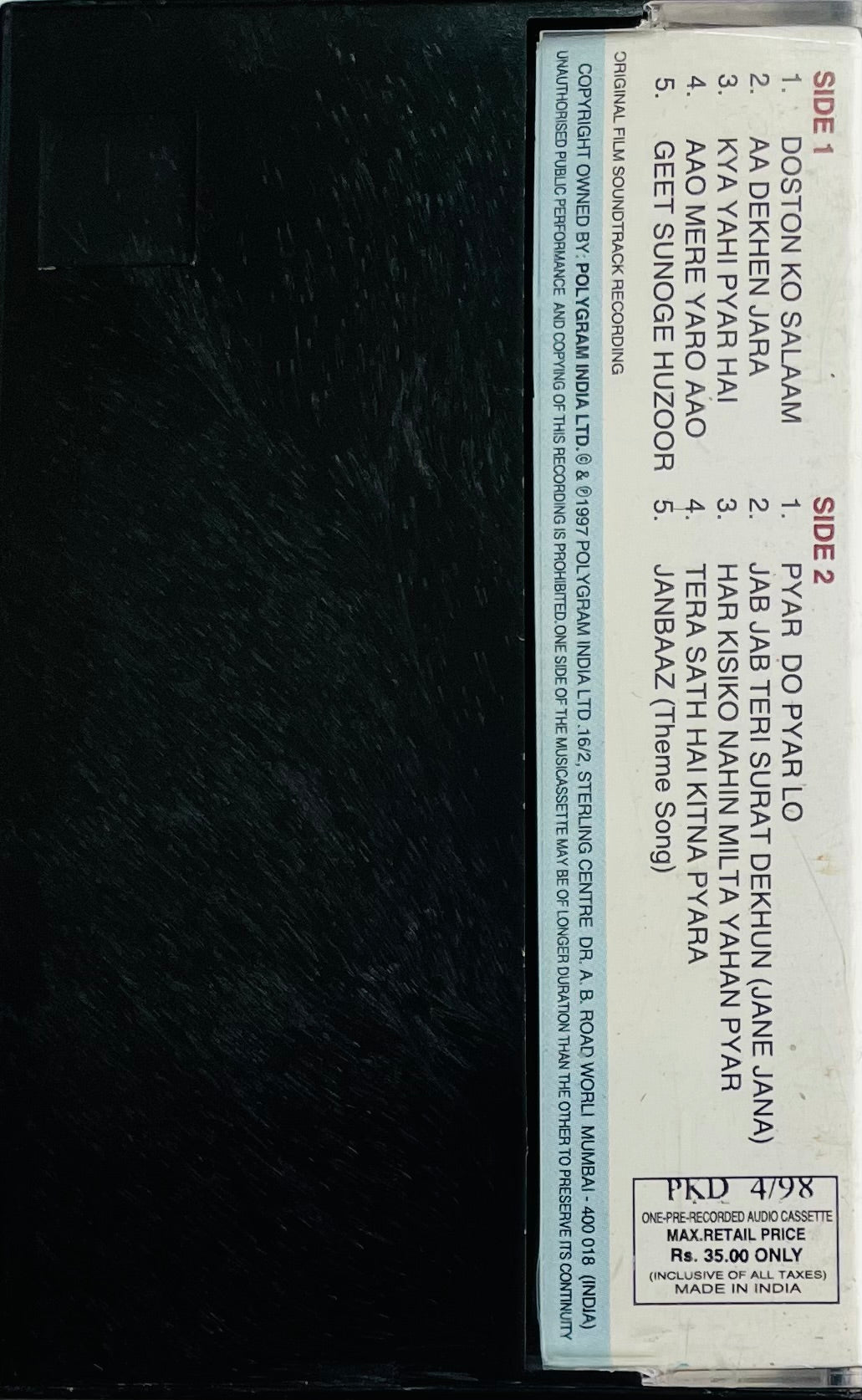 Note : Please forward and rewind the tape before playing for the first time and also adjust the azimuth for optimum sound.